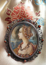 I like to combine old treasures from the fleamarket with new creations. Most of all I love old rhinestone jewelry. Here are three examples, a string of pearls consisting of new pearls and an original art deco clothes clip. The other necklace consists of silver elements, crystallized quartz and swarovski crystals and an old handmade silver rose dating back to the 1950's. The third one is an old art nouveau rhinestone necklace.